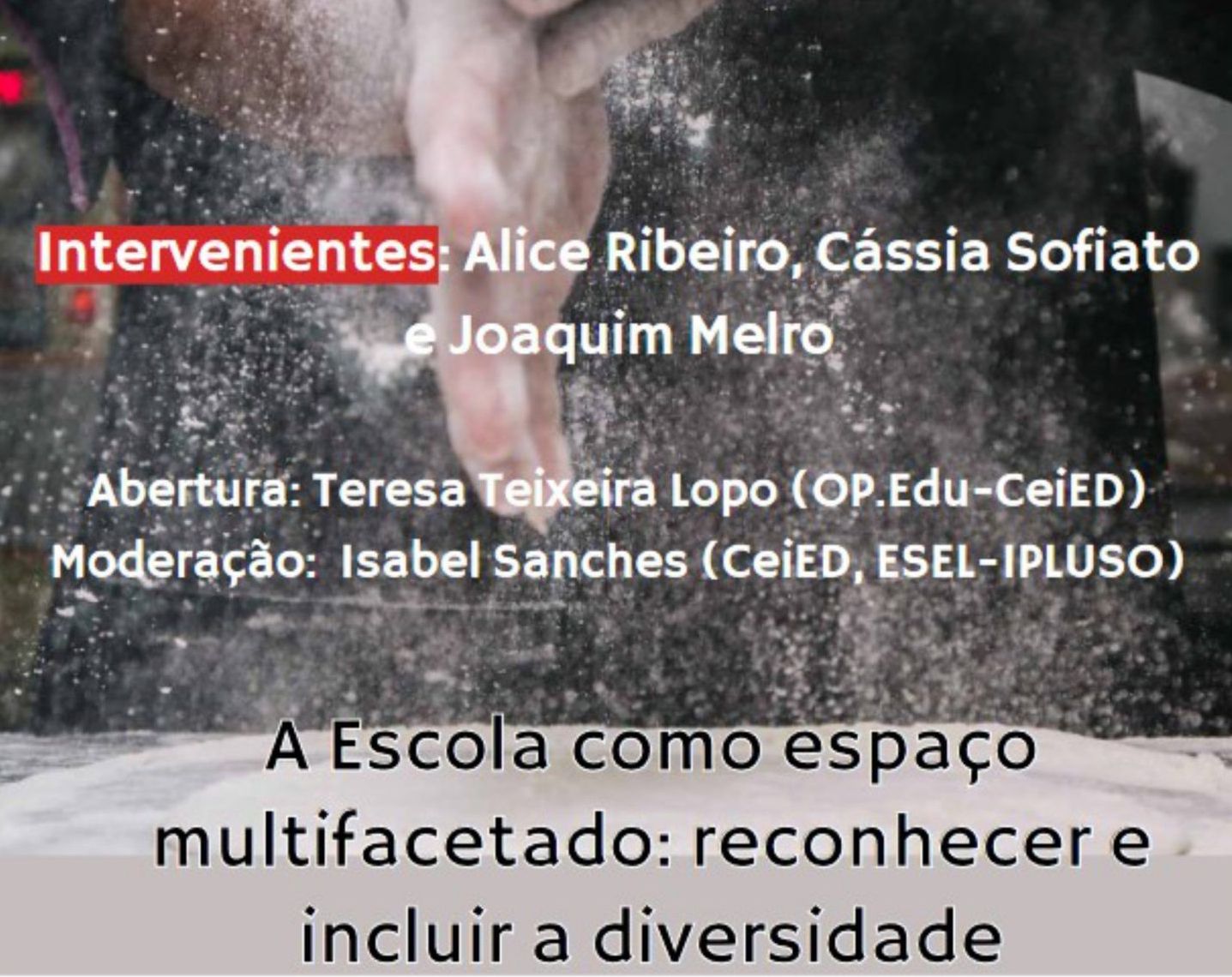 The colloquium will also include the participation of Teresa Teixeira Lopo (OP.Edu-CeiED) in the opening session, and Isabel Sanches (CeiED, ESEL-IPLUSO), who will moderate the debate.